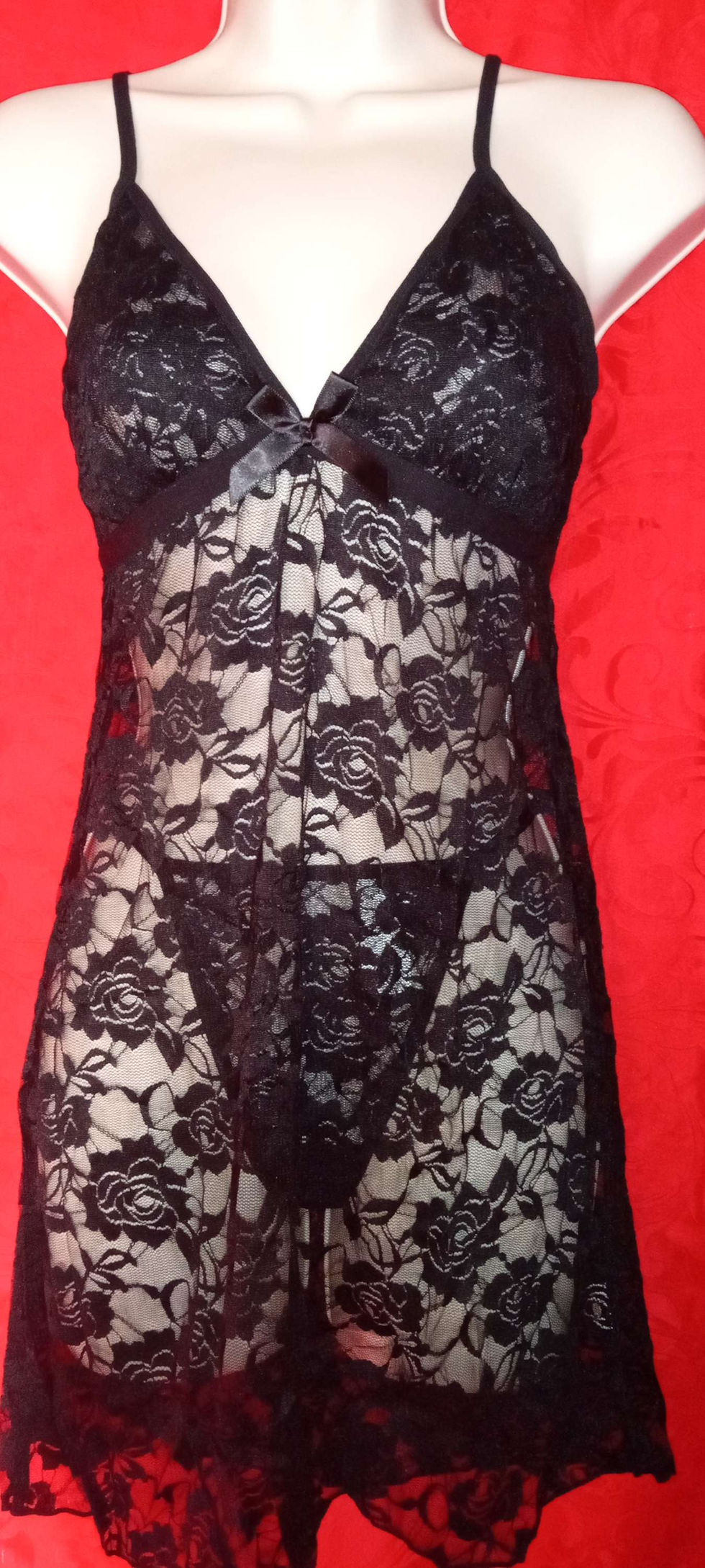 Spaghetti Strap Lace/Mesh Dress w/Thong